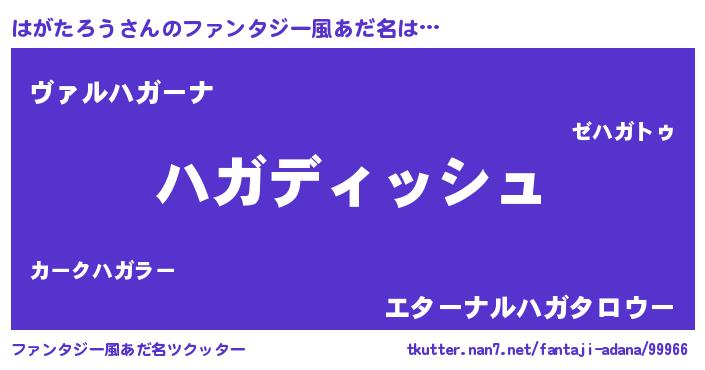 | 意味不明あだ名 | 『永久保存はがたろう』『自称はがたろう』 |
