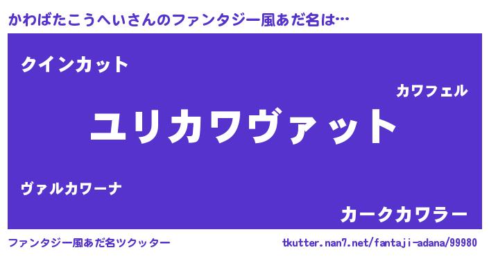 | 男性向けラノベタイトル風あだ名 | 『かわばたこうへいに滅ぼされるだけの簡単なお仕事です』 |