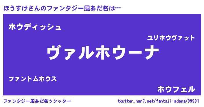 | 男性向けラノベタイトル風あだ名 | 『魔弾の王とほうすけ』『ほうすけの憂鬱』 |