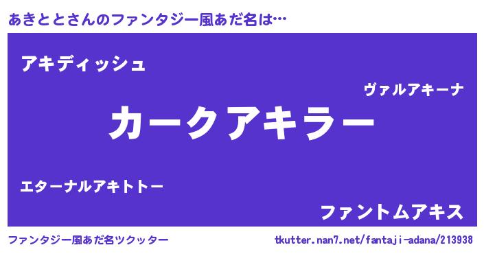 | ヒーロー風カッコイイあだ名 | 『ネオアキトト』『黄金騎士アキ』 |