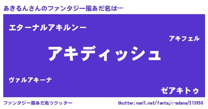 | 意味不明あだ名 | 『永久保存あきるん』『自称あきるん』 |