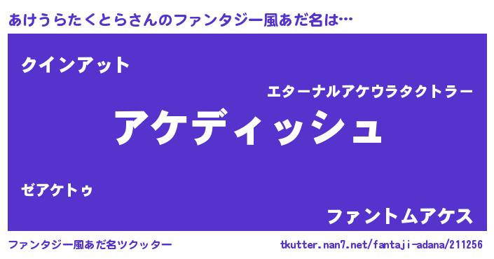 | 意味不明あだ名 | 『永久保存あけうらたくとら』 |