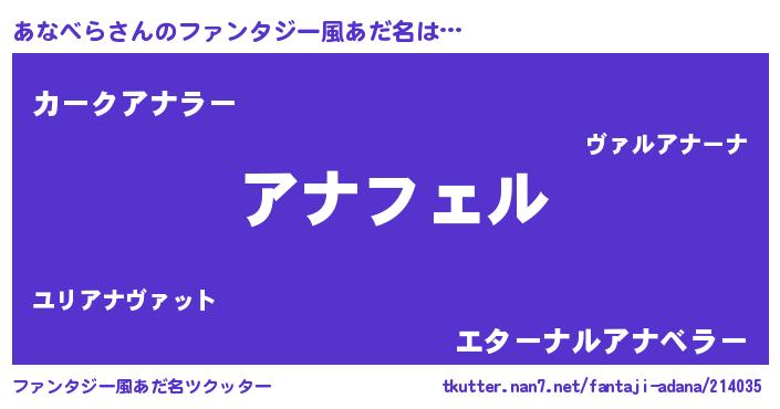 | 男性向けラノベタイトル風あだ名 | 『アナベラアートオンライン』 |
