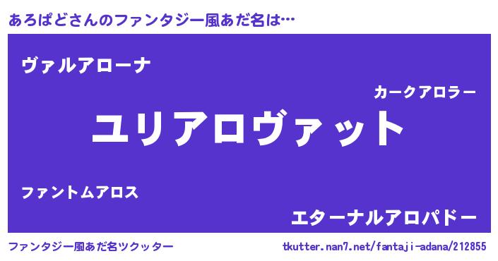 | 女子向けラノベタイトル風あだ名 | 『あろぱどの玉の輿計画!』 |