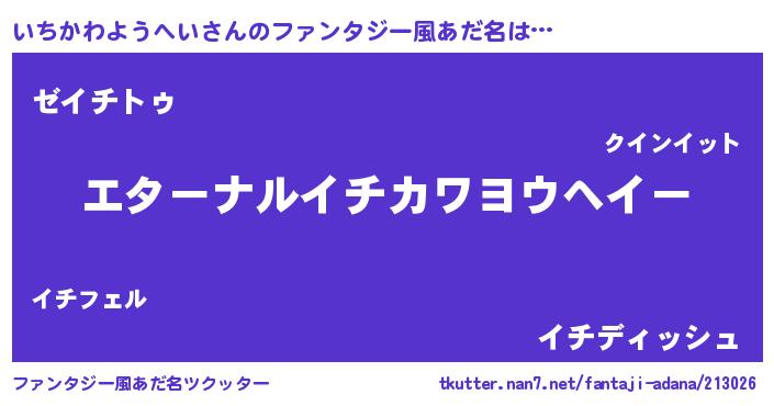 | 意味不明あだ名 | 『いちかわようへいフォーエバー』 |