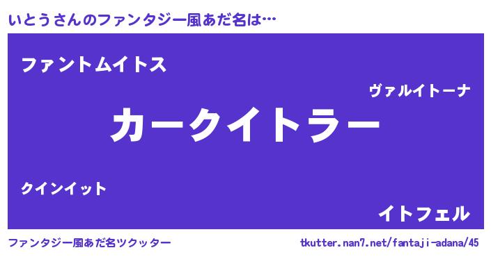 | 男性向けラノベタイトル風あだ名 | 『いとうに滅ぼされるだけの簡単なお仕事です』 |