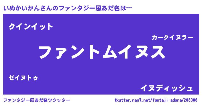 | 男性向けラノベタイトル風あだ名 | 『いぬかいかんの嫁は女の子じゃないと思った?』 |