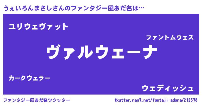 | 女子向けラノベタイトル風あだ名 | 『乙女ゲームの破滅フラグしかない悪役うぇいろんまさしに転生してしまった…』 |