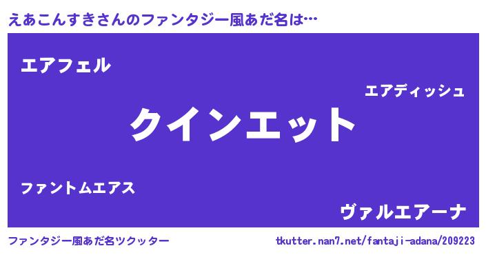 | 欧米人風あだ名 | 『アンジェラ・えあこんすき』 |