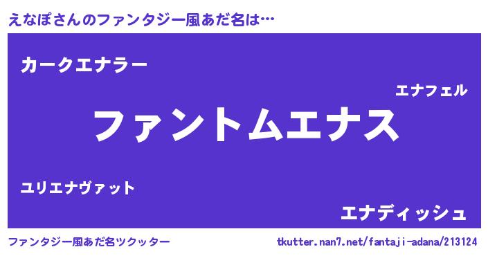 | ヒーロー風カッコイイあだ名 | 『魔戒騎士エナ』『ネオエナポ』 |