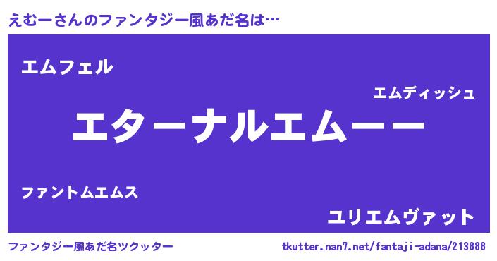 | 意味不明あだ名 | 『えむーフォーエバー』『ペロリンえむー』 |