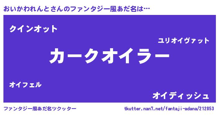 | 男性向けラノベタイトル風あだ名 | 『うちのおいかわれんとが世界を掌握している!』 |