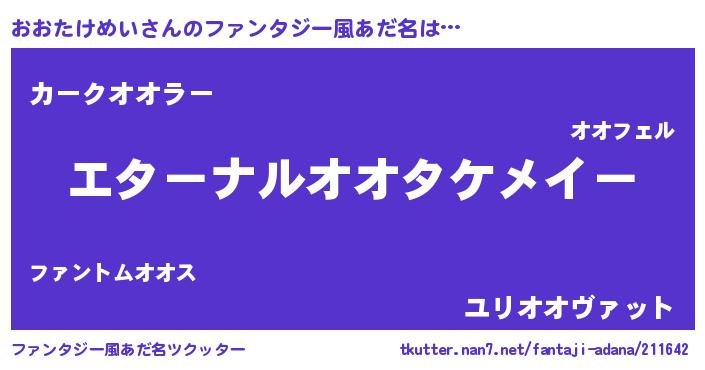| 欧米人風あだ名 | 『おおたけめいクリステル』 |