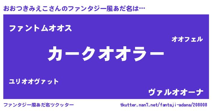 | 欧米人風あだ名 | 『おおつきみえこ・ステッグマイヤー』 |