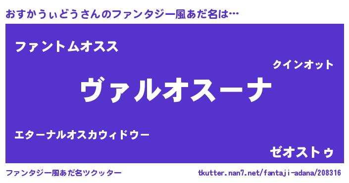 | 意味不明あだ名 | 『住所不定無職おすかうぃどう(79歳)』 |