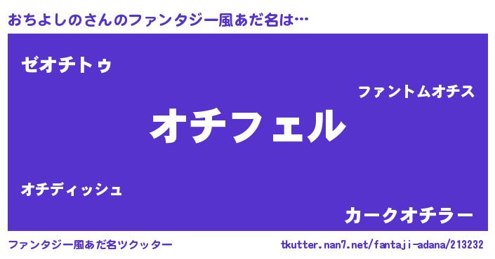 | 意味不明あだ名 | 『ペロリンおちよしの』『自称おちよしの』 |