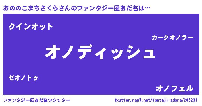 | 意味不明あだ名 | 『永久保存おののこまちさくら』 |