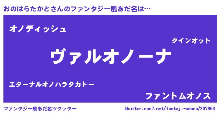 | 女子向けラノベタイトル風あだ名 | 『悪役おのはらたかとに転生したようですが、知った事ではありません』 |