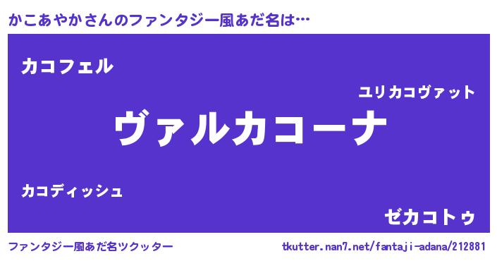 | 男性向けラノベタイトル風あだ名 | 『この素晴らしい世界にかこあやかを!』 |