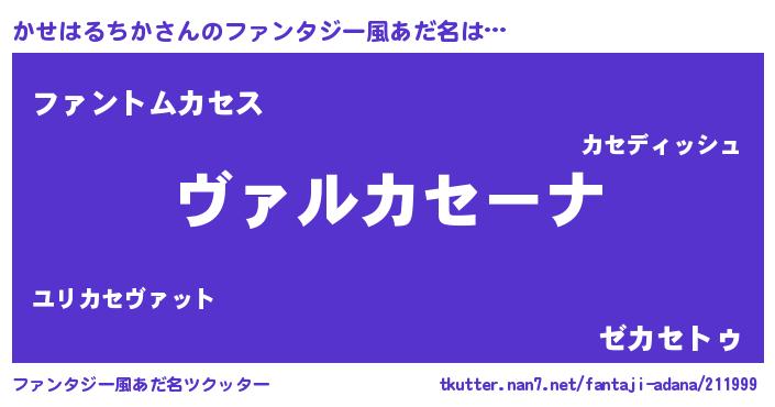 | 男性向けラノベタイトル風あだ名 | 『魔弾の王とかせはるちか』 |