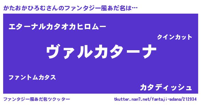 | 男性向けラノベタイトル風あだ名 | 『この素晴らしい世界にかたおかひろむを!』 |