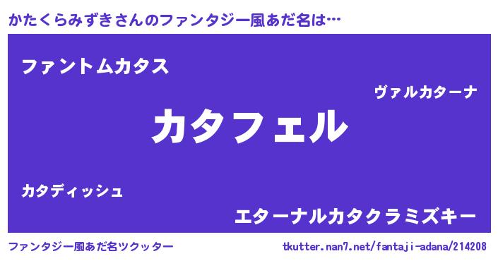 | ヘコむあだ名 | 『かたもー』『かたぷりん』『牛乳』 |