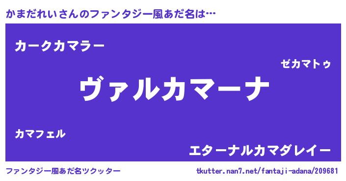 | 男性向けラノベタイトル風あだ名 | 『魔弾の王とかまだれい』 |