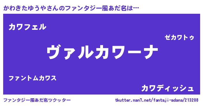 | ヘコむあだ名 | 『かわにー』『かわきたゆうや(苦笑)』 |