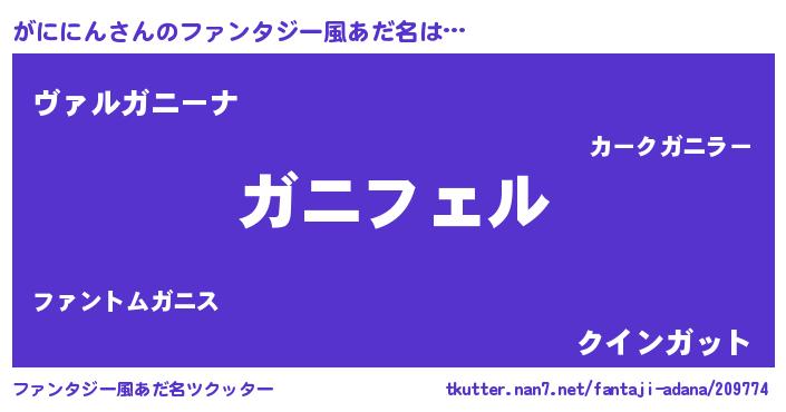 | 胡散臭い通販商品みたいなあだ名 | 『億万長者になれる水晶球…その名も「がににん」』 |