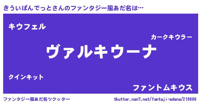 | 意味不明あだ名 | 『住所不定無職きういばんでっと(74歳)』 |