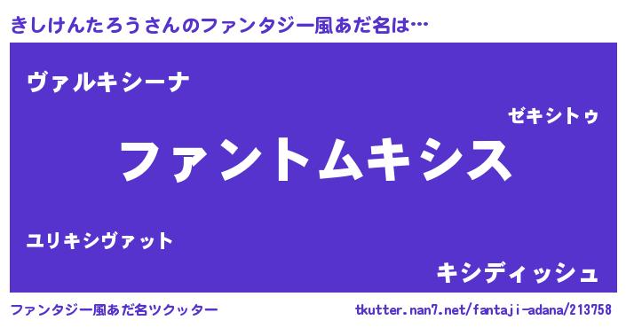 | ポケモン風あだ名 | 『ヒキシケンタロウ』『キーシイ』 |
