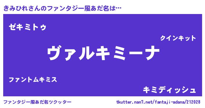 | 男性向けラノベタイトル風あだ名 | 『魔弾の王ときみひれ』 |