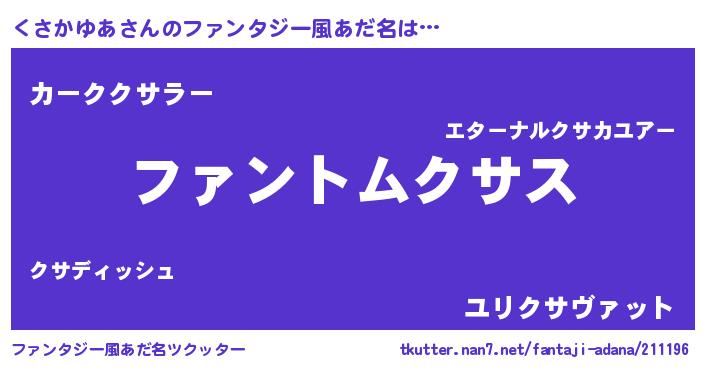 | 男性向けラノベタイトル風あだ名 | 『くさかゆあに滅ぼされるだけの簡単なお仕事です』 |