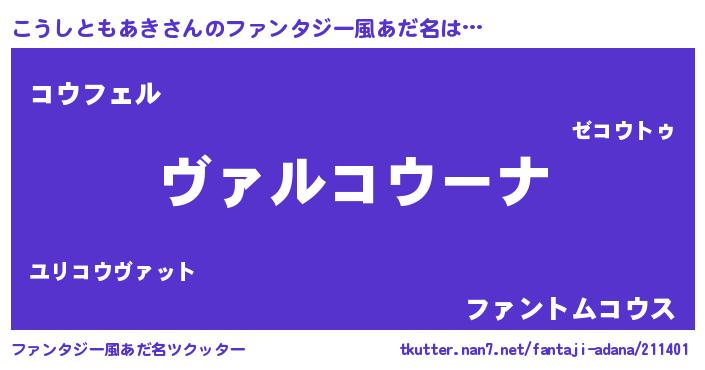 | 男性向けラノベタイトル風あだ名 | 『この素晴らしい世界にこうしともあきを!』 |