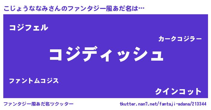 | ヘコむあだ名 | 『こじょうななみ(苦笑)』『こじもー』 |