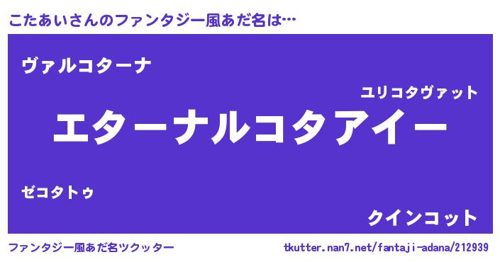 | 意味不明あだ名 | 『こたあいフォーエバー』『自称こたあい』 |