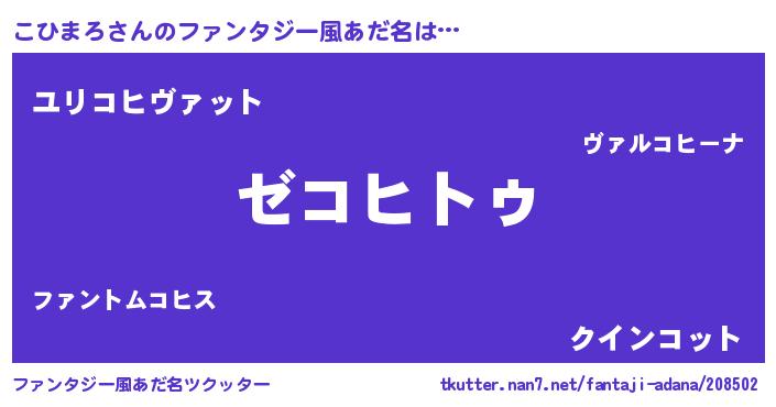 | 男性向けラノベタイトル風あだ名 | 『Re:こひまろから始める異世界生活』 |