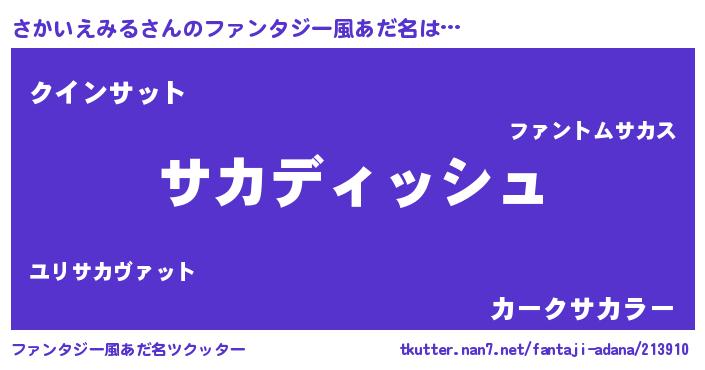 | 意味不明あだ名 | 『永久保存さかいえみる』 |