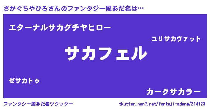 | 男性向けラノベタイトル風あだ名 | 『サカグチヤヒロアートオンライン』 |