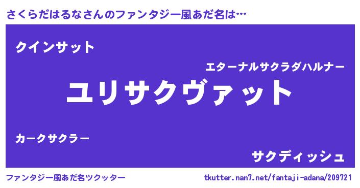 | ヒーロー風カッコイイあだ名 | 『慈愛の使者さくらだはるな』 |
