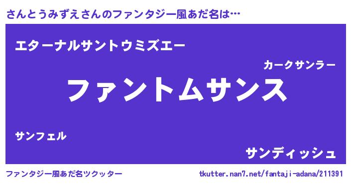 | 意味不明あだ名 | 『とにかく怪しいさんとうみずえ』 |