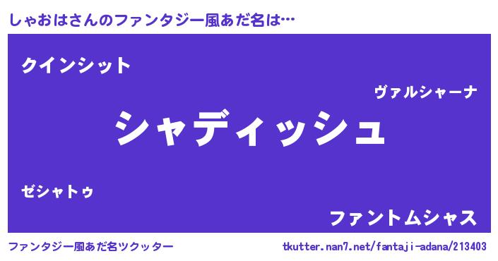 | 男性向けラノベタイトル風あだ名 | 『誰もが恐れるあのしゃおはが、ぼくの専属メイドになるようです。』 |