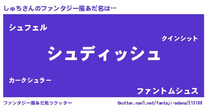 | 男性向けラノベタイトル風あだ名 | 『しゅちという概念が存在しない退屈な世界 』 |
