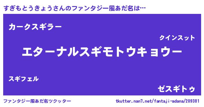 | 男性向けラノベタイトル風あだ名 | 『やはりすぎもとうきょうの青春ラブコメはまちがっている 』 |