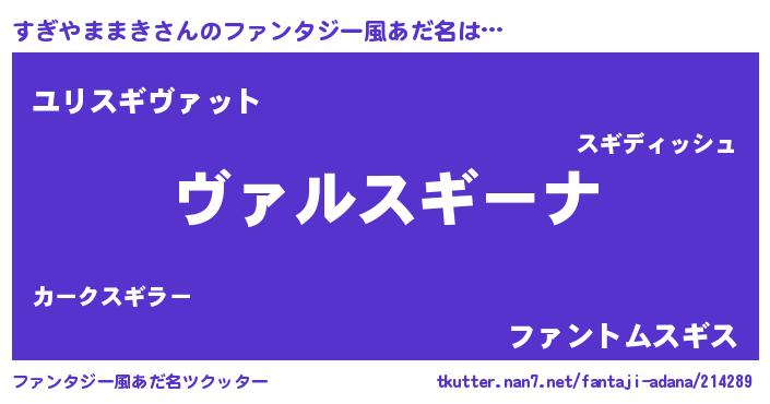 | 男性向けラノベタイトル風あだ名 | 『魔弾の王とすぎやままき』 |