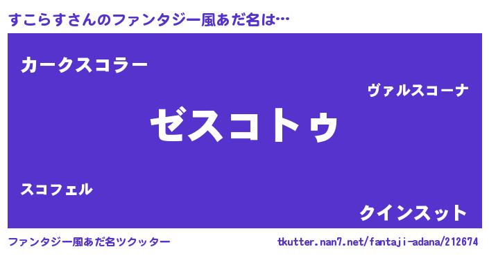 | ヘコむあだ名 | 『すこにゅー』『すこらす(苦笑)』 |