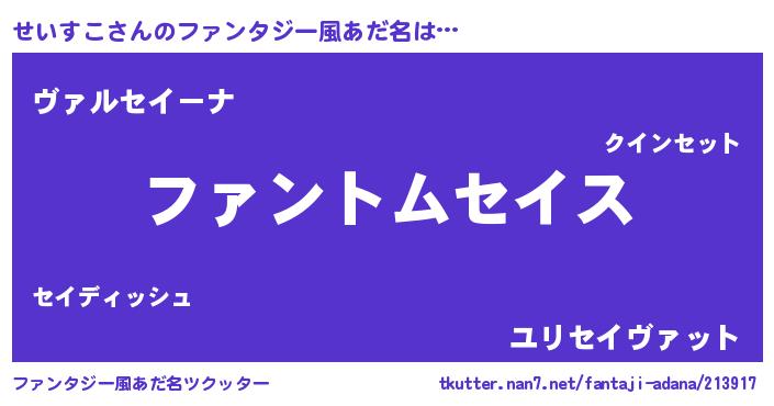 | 意味不明あだ名 | 『とにかく怪しいせいすこ』 |