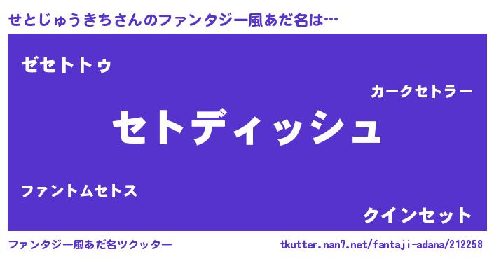 | 男性向けラノベタイトル風あだ名 | 『誰もが恐れるあのせとじゅうきちが、ぼくの専属メイドになるようです。』 |