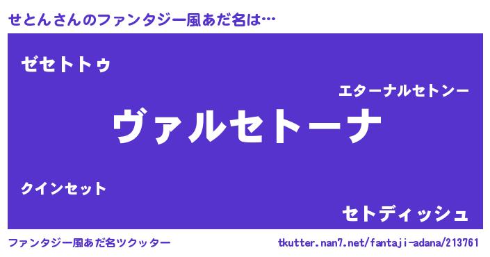 | ポケモン風あだ名 | 『セートイ』『セトゴンZ』『ゼニセト』 |