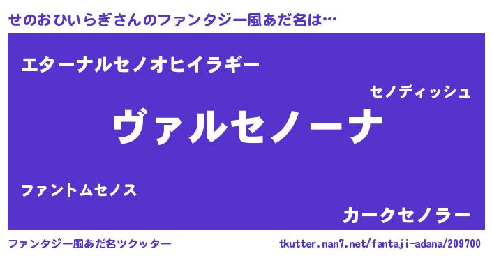 | 意味不明あだ名 | 『住所不定無職せのおひいらぎ(95歳)』 |